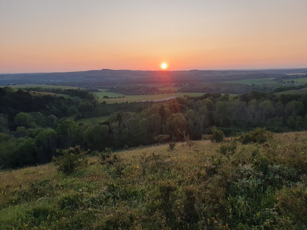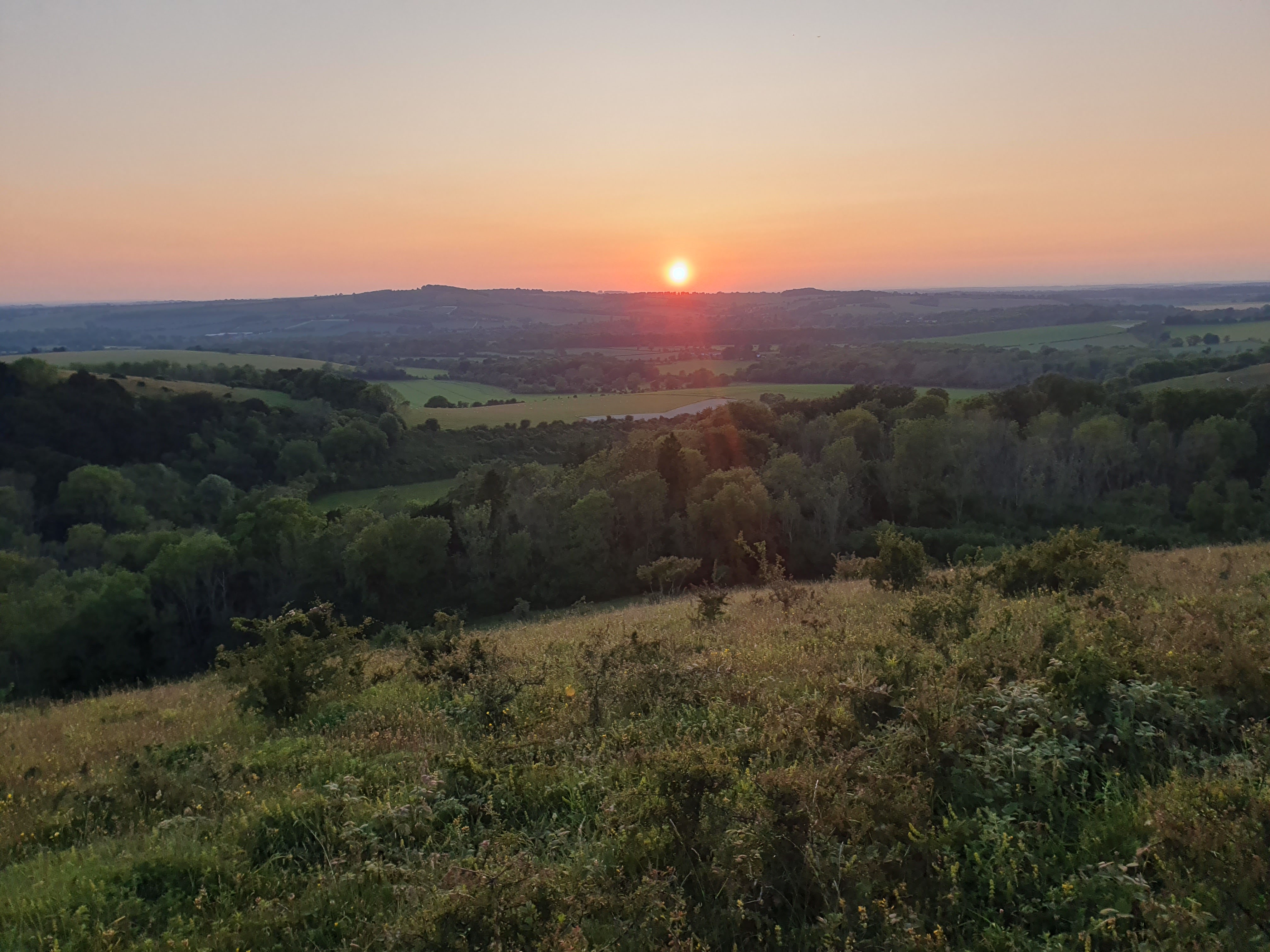 I’m not sure I can tell the difference between rabbits and hares. I decide this creature bounding towards me must be a hare. Taller, thinner, bolder than a rabbit. He comes right close before I move, sending him marching off back the way he came. I pass two, maybe three unmarked taps on route and I’m annoyed to have been carrying an extra two litres all morning. They’re supposed to end after this farm so I stop to camel up. I debate briefly at Beacon Hill about carrying on to Exton to the Shoe Inn for lunch. I should get there before service ends. Quick reminder, this is after all a holiday. The problem I’ve got is I’m way ahead of schedule. I’ve got maybe an hour more walking ahead of me, before I should stop. Sunset is another 6 hours away. A pint and a sandwich should slow me down a bit. I’m ruined by the time I reach the top of Old Winchester Hill. I had visions of cowboy camping in the rings of the iron age fort but its too exposed. Not just to the weather but a near direct sight line to the carpark across the hill. Instead I wander through the Yew trees looking for a small patch of flat ground to spend the night. Leaving the tent to watch the sunset is an anxious affair. There are it turns out, more people around than I had anticipated. I find open ground and a seat to watch the day end. Already looking forward to crawling into my sleeping bag.