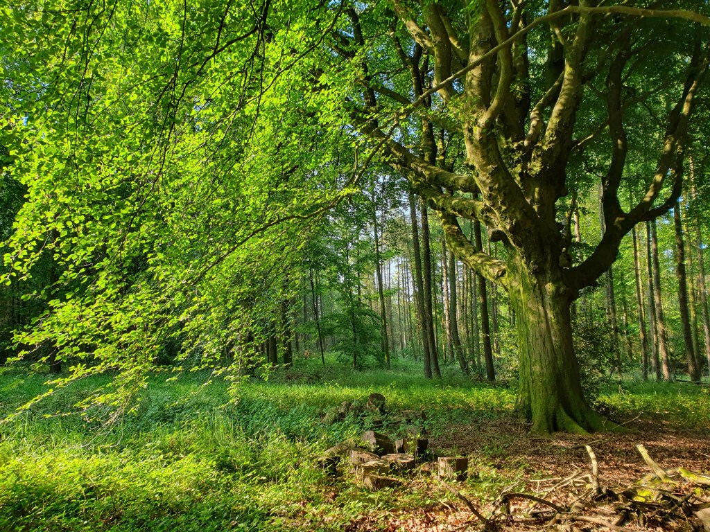 The farm tracks are fine until something comes, usually wider than the road. The grass verges haven’t been mown. Thinking of the wildflowers, where here they’re mostly nettles. A woman sits on a corner with a water carrier offering some out. I’m thankfully still full. Though I know this isn’t really a medal of honour. I should be drinking it. I push up on to Harting Down. The second Beacon Hill is the first climb that looks nasty. I don’t even have to go up it but it’s there, and I’ve got time. The trail punches straight up the chalk. I drop off the ridge. Leaving the wind and sun exposure behind and enter a pine plantation. Immediately I start picking out potential spots. Most are a piece of flat ground, all are too close to the path. I see more deer in 5 minutes than I’ve seen so far. I swing across the rows of pines, the map has a ruin hidden away. I hope for walls surrounding a long abandoned garden. I get walls but they’ve all fallen down. Something about the small cairn of flint and logs sets me off. “What’s under there?” my brain asks. I don’t care to find out. I find other places, still too close to the path but I figure if I leave it late enough, I should be fine. I find a string of stumps, pot on one, stuff on the next, me on the last. I sit and listen to the trees whispering in the canopy, birds shouting over them.