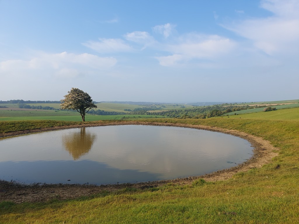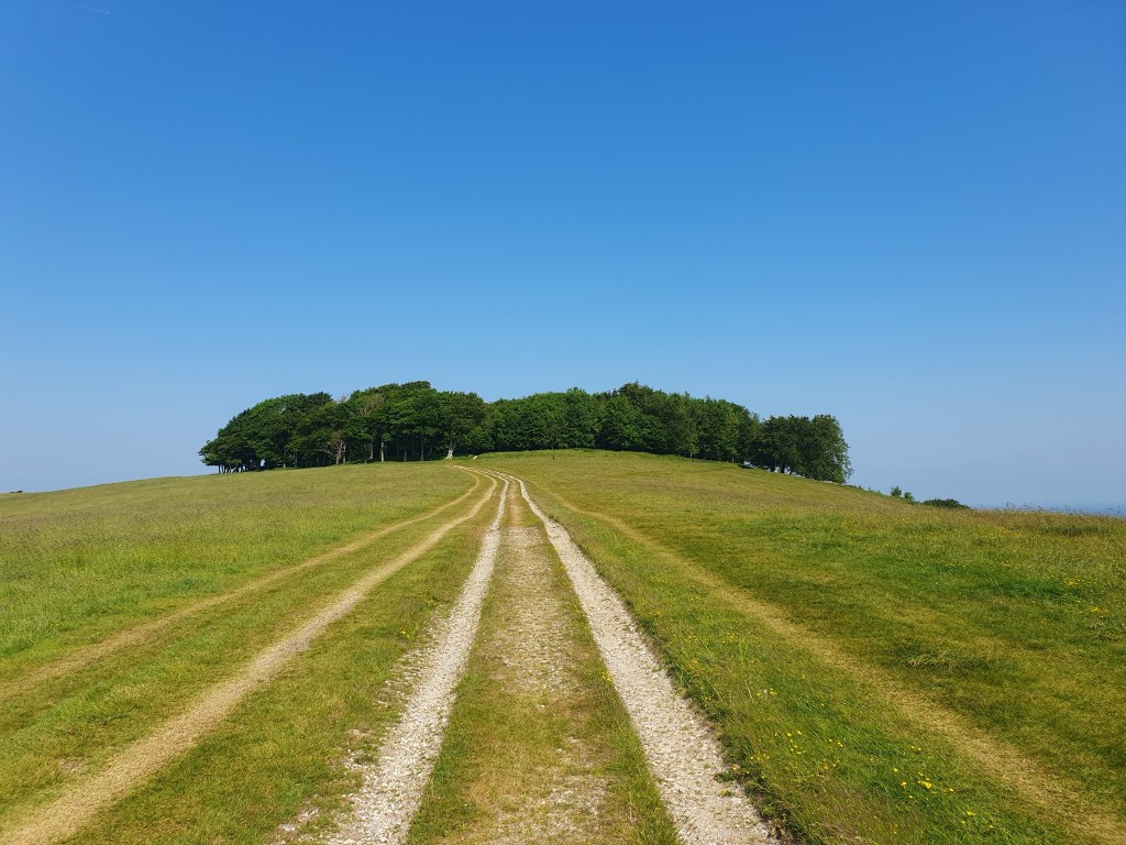 One field border is bright with the red burst of poppies. I stop at a carpark for a late breakfast. I find now i am actually excited and hungry for the leftover pershwari naan. My mood rapidly improves. Coming down the next valley I spot a woodpecker on a water trough. I begin to remember why I’m doing this, that I am in fact having a good time. The sign for the tap at Washington has the words ‘not working’ and the date ‘5-6-23’ carved into it. That was only three days ago. I turn it on and a trickle comes out, and there’s enough coming through to fill up. I remain grateful. The A24 is a distinctly unpleasant road crossing. Two lanes, fast moving. There’s a decent wedge of land between the two directions of traffic. I trot across and get out of there as fast as I can. In my first drafts, Chanctonbury Ring was a place to spend the night. My imagination had been captured some time ago by the writings of Robert Macfarlane. I’ll admit its not much too look at. A heavily planted piece of the hill tops. The history stretches back through millenia. Obvious is the neolithic hill fort, and you can see why. The plains spread out to the North. Through the lingering haze I can make out the windfarms in the channel to the South. Supposedly, this was also the site of a Roman temple, to who I don’t know. I’m pleased to arrive before 10. Getting up and on was better for me than hanging around for breakfast. I enjoy the last of the vitamin D and baste on the sunscreen.