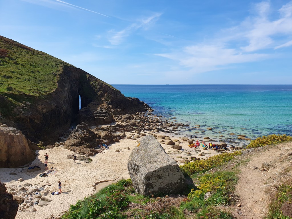 The next the morning I find I have the tightest of thighs. You don’t spend all that much time on your knees. I drag myself back to the Smart residence. We pile in the van again and head out towards Land’s End. Nancy and Katie sing literally anything in the front of the van. I’m just happy to be involved. The winding roads across the hills. The reminder that this part of the country, the foot, the end, remains disconnected. We walk the South West Coast Path from lands End to Nanjizal Bay. The drama of coast is a close second to that of the mountains. I know that now. High peaks are rare and I think that adds value for me. I’m never more than 70 miles from the coast. I can still feel my excitement as we close in on the bay. I speed up, almost sprinting down the stairs. The Song of the Sea opens up. The tide slowly coming in. Katie and I wade in to the pool, the cold water shock brings reward. An unrivalled sense of calm. Gobies flee from our slow moving feet. We clamber over the rocks. The waves, the tide, the power of the open Atlantic grumbles beyond. The noise is humbling. There’s talk of swimming round but neither of us seem to have the confidence to say “let’s go”. We edge back, over the boulders. A crowd waits on the far side and we ruin plenty of photos simply by being here. Nancy waits, the cold too much. Katie and I head for the waves crashing in the bay, riding the breakers back to shore. On the way back we stop at a shipping container to pick up coffee. Then it’s on to the bustling centre of St Just. At the Dog and Rabbit I have a sandwich with so much goat’s cheese I think I’ll be made out of it by the end. Then we’re back to Hayle. I return to my cottage. Another temporary home, knackered. They are my girls and I love spending time with them. Four years have passed but it could only be four days. I hope it is not another four. On our last morning together we walk the high street of Hayle, which in spite of its size does not house an ugly magnet worthy of purchase. I should have made more effort at St Ives. We drop Nancy at the station and then Katie and I walk out along the harbour to the beach. There are so many fish in the shallow water. Katie stops to pick up tiny bits of plastic out of the tide line. We grab a pasty for lunch. The train comes for me. I leave the deep west behind. The land seems to relax, letting go of all it has squeezed in. The hills unfold. The sky lifts. I cruise along the familiar coast. The faded seaside glamour is briefly restored through mid-afternoon sun. I swap at Exeter to move inland. Back to the chalk. Back to the sprawl of my suburban reality.