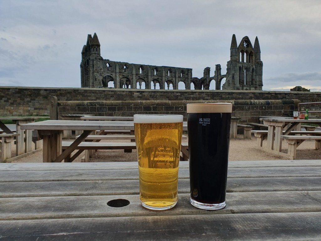 Rachael and I set out the next morning to explore Whitby. Ticking off the major landmarks; The Whalebone Arch, a Captain Cook statue, one of he quays. Whitby answers York’s Shambles with some of its own. Rachael challenges me to go in 3 different shops just to browse. The sort of thing I’d never do. We smash my target and I even find the first ugly magnet of the trip. I learn about Whitby Jet, in that it exists and comes from the coastline. A gemstone that is more wood than rock, and where we get out descriptive jet black from. Ancient fossilised monkey puzzle trees. I’m not sure what sets it apart from coal beyond it being used in jewellery instead of power plants. So many of the fisherman’s cottages are now holiday accommodation. It is hard to know how to feel. If people lived here they’d need an industry to support them, but the industry is tourism and the tourists need places to stay. I’m not sure who will win that argument. We grab a bite to eat from the Cheeky Pig. The man in there seems to specialise in pork and stuffing sandwiches. We wolf them down watching kids catch crabs in the harbour. We came to Whitby to visit Grandma. Rachael’s, rather than mine. We stop in for a cup of tea and get a second lunch. Grandma tells us what the news is. Her partner Sid gets his radio on for the football. We end up there for several hours. We finish off at the Abbey. Or outside the walls of it anyway. In the Whitby Brewery. I get the Gothic Stout which is both creamy and delicious. Rachael doesn’t pull her usual oh my god that’s disgusting face when she tries it so I know I’m on to something good. We sit and watch the light fade on the ruins.