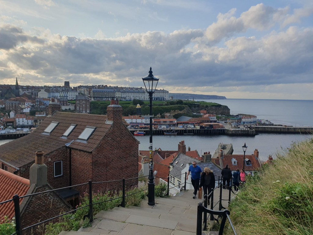 The storm seemed to finally roll in off the moors overnight. Wind rattles at the windows, which seem to be sympathetic to its cause of getting inside. We engage in a sunrise mission down to the quays. We’re joined by the dawn patrol of photographers and dog walkers. The morning is calm, the sky is clear. The blazing ball of exploding hydrogen speeds over the horizon before settling in to a more sedate pace. We go find the best of things, a cafe open before 9am. Yorkshire accents bubble among the group already in the Whistling Kettle. It’s cash only but they let us order before Rachael runs off to find a cash machine. We get the full English with a mug of filter coffee to set us up for the day. Full of fried meat, mushrooms and bread we climb the 199 steps to the abbey ruins again. We pass through an open field, following a pheasant who seems to be leading us along the footpath on some noble quest. We’re early on the cliff tops, it’s quiet. Our first point of interest is Saltwick Bay holiday park. We descend from the cliffs on to the beach. We walk the full length. A pair of fossil hunters come down and begin tap-tapping away at rocks on the beach. “How do they know which rocks to break open?” Rachael asks. “The suspicious looking ones,” I tell her. She picks up what she decides is a rock that is definitely hiding something. She lifts it above her head, before releasing it down in to the boulders; rock smash. It’s super effective! The rock comes apart, but reveals no secrets. I wonder what the professionals think of this amateur approach. You’ve got to start somewhere. At the light house we pause to take jumpers off. Coming around another point, Rachael stops and points. A porpoise. A dolphin? What’s the difference, we can’t tell from here. There’s definitely something of interest. Birds bomb the sea’s surface in acts of violent self harm which in reality must be worse for the fish below. Seals bob in the bays. Big ones swim between headlands. There are so many birds, but still so many less than there once was. Crowds build after our quiet start. We share a bench with a Northern couple. He jokes they booked it. They don’t have the thermos of tea though. We walk down the hill to Robin Hood Bay. Rachael takes a photo for a chap in all his hiking gear. Long distance walker, Just finished the Coast to Coast. I start dreaming of days on the trail. We catch the bus back, still £2 fares. Why can’t more things be subsidised for the good of the people? A four hour walk reversed in 15 minutes.