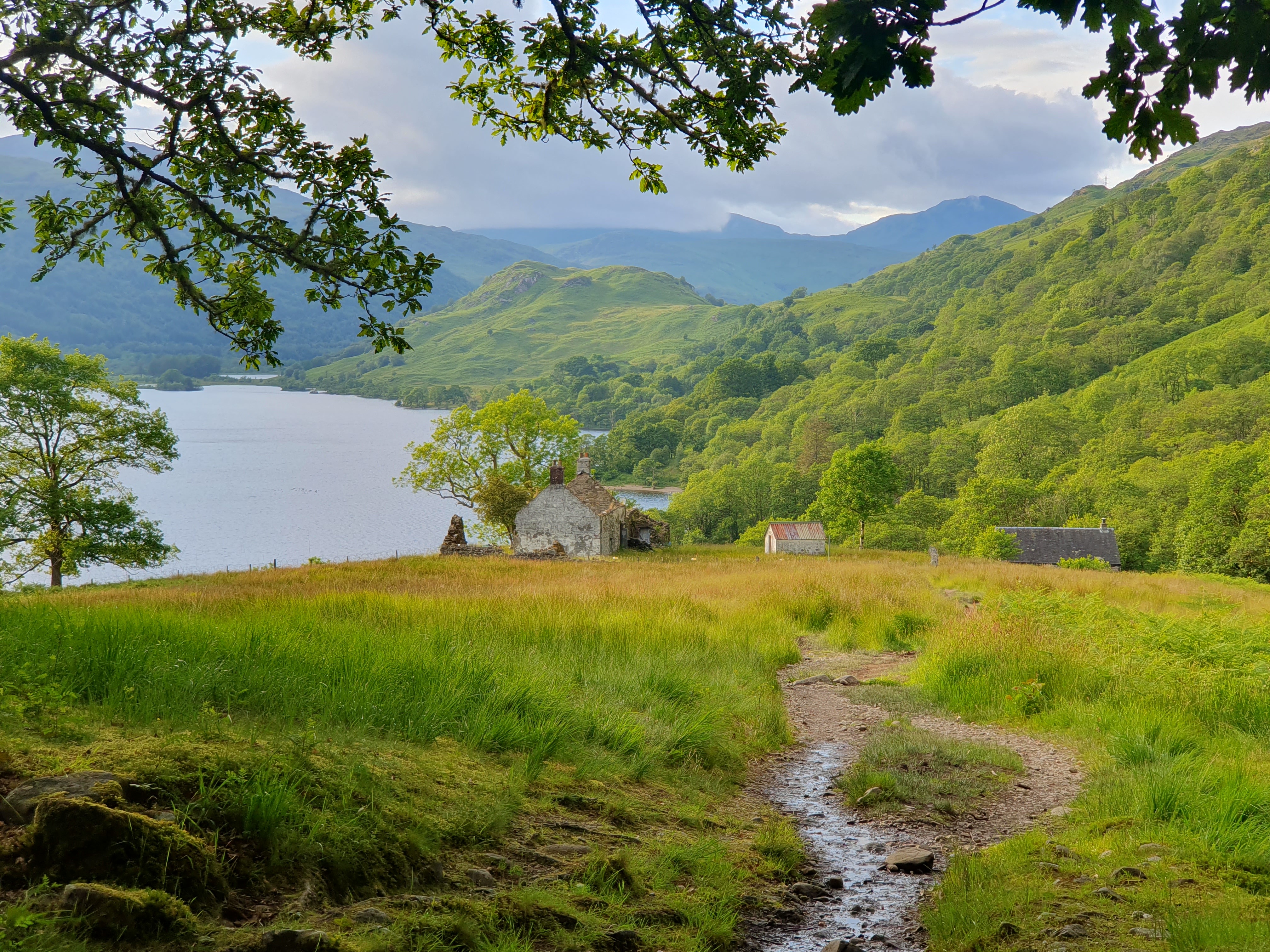 On the needless climb over Craigie Fort, a little girl decides she wants to be my friend. She tells me her car is red. I tell her I wanted a red one because they go faster. Her dad assures me their red car doesn’t go very fast. He tells me they’ve come over from Edinburgh, somehow only an hour’s drive away despite being on the other side of the country. They do this often, it being his children’s favourite walk. I get a wave goodbye as our paths diverge. The loch-side trail is anything but, often veering inland through regenerating woodland. Birch, then oak. The downside to nature restoration is you lose a lot of the views, but I’m content in the trees. The trail goes up and over many cliff faces before returning to a shingle beach. Pebbles of granite and quartz breaking down in the steady tumble of waves. I stop again at the Sallochy campground for another break. Tents are already pitched on the bookable sites. Part of me is ready to stop. The benefit of a paid campground is you can stop, whatever the time of day. The midges give me a warm welcome, swarming to my exposed legs. The nets people have been putting on their heads seem a bit much. I put my hood up and pull my bluff over my nose, which does a job. A quick blast of Avon Skin So Soft on my legs seems to adds to the respite. There’s a tap here and I decide to rest up a while before filing up. I reckon I’ve got another hour of walking to go. After the soaking of the morning, I’m blessed with sunshine beyond Sallochy, more hills too. The trail getting a little monotonous now with tired legs approaching the day’s end. I am ready for a big sit down followed immediately by a big lie down. I take a final break at Rowardennan, a last chance to use porcelain facilities. Not much further to go. There are large clearings beyond the no camping zone which makes life easier until I stop. I thought my experience of sandflies in New Zealand would prepare me for the midges but there’s no comparison. Smaller, more numerous. A golden horde of bugs descends and never leaves. The Avon Skin So Soft appears to do nothing this time, and my legs turn black. This is so much worse. After too long a delay I pull on waterproofs, covering up as best I can. There’s an absence of a decent seal at the ankle, and I didn’t pack long socks. The midges make short work of finding my weak spot. I walk in circles cooking and eating dinner, which seems to be the only way to relax. I decide to get in to the tent just once, for bed.